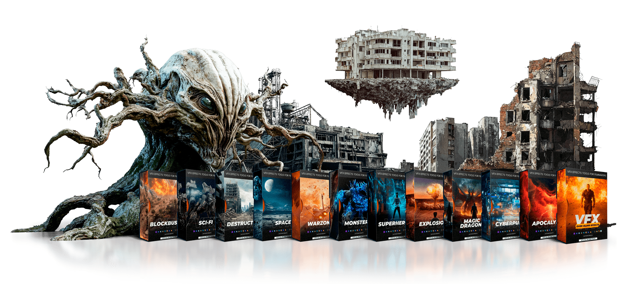 Absolutamente! Projetamos o Pack exclusivamente para cineastas e editores que não estão familiarizados com efeitos visuais. Você não precisa de treinamento para fazer tudo sozinho com facilidade. Já pré-renderizamos todos os efeitos 3D e os compusemos para que pareçam realistas. E tudo vem em um fundo transparente ou Preto. Basicamente, tudo o que você precisa fazer é colocar os efeitos em seus videos.